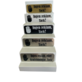 Bordsdisplay komplett med 5 skyltar av vardera artikel NN5999919, NN5999926, NN5999933, NN5999940 och NN5999995 totalt 25st skyltar. Format på skylten 100x30mm