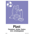 Dekal sortering "Plast" från Systemtext. Dekal för sortering med texten "Plast", designad för tydlig märkning vid källsortering, vilket underlättar avfallshantering och bidrar till en mer organiserad miljö.