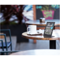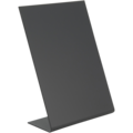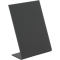 Griffeltavla L-Form från Securit är en vertikal svart griffeltavla med matt frostad yta och glansig baksida. Den tåliga designen har en hög motståndskraft mot fläckar och repor och är mycket enkel att rengöra. Placeras på bordet eller disken.
