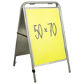 Skyltställ Sign 50x70cm från Dahlander Marking. Gatuställ med ben av 22 mm stålrör som är lackerade. Utmärkta gatuställ som är enkel att hantera och lätt att byta budskap på. Finns i fyra olika färger. Leveras med frontplast med magnet i Pet antireflexplast som gör det enkelt och smidigt att byta budskap. Tar mycket liten plats ihopfällt.