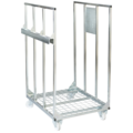 En stabil vagn med konstruktion av elförzinkade fyrkantrör och försedd med lyftbalk, 2 fasta + 2 länkhjul av nylon. Finmaskig nätbotten, rutstorlek 50x50 mm.