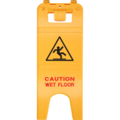 Varningsskylt som tydligt markerar ett område och varnar för halkrisk på grund av våta golv. Passar alla miljöer där golvrengöring utförs frekvent. Exempelvis dagligvaruhandeln, kontor och sjukhus.