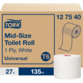 Tork Mid-size Universal är ett kompakt 1-lagers toalettpapper till Tork Dispenser Auto Shift T6.