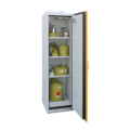 Säkerhetsskåp godkänd EN14470-1 / ISO 3864 för förvaring av brandfarliga vätskor vid arbetsplatsen. Utvändig kropp av stålplåt i pulverlackerad ljugrå och dörrar i antingen gul RAL 1007 eller grå RAL 7035. Isolering av miljövänligt material i klass A.