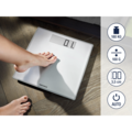 Personvåg ur serien stylesense Comf 100 från Soehnle är tillverkad av strakt säkerhetsglas och kan hantera en maximal vikt på 180 kg.