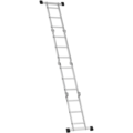 Universalstege tillverkad av aluminium och förzinkad stål, en stege med många uppställningsalternativ. Stegen har dessutom en tvådelad försinkad iläggsskiva som ingår med möjlighet att omvandla stegen till arbetsbänk.